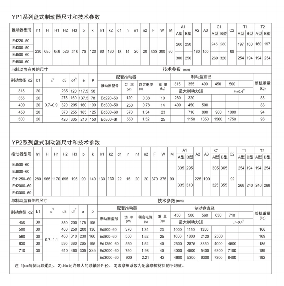 電力液壓盤式制動器符合DIN15435標準和JB/T7020-2006標準。配套符合DIN15430標準的Ed系列推動器。